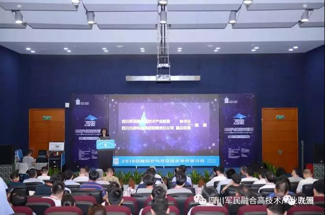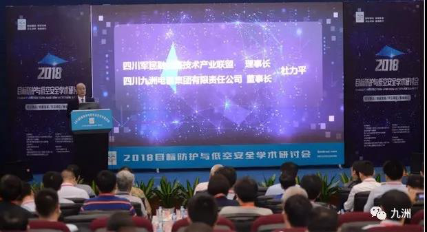On April 23-24, the "2018 Target Protection and Low-altitude Safety Symposium" was held in Shenzhen with the theme of "military and civilian integration, innovative development, unforgettable heart, and forward-thinking". Chairman of the Sichuan Military-civilian Integration High-Tech Industry Alliance, Du Liping, Chairman of Sichuan Jiuzhou Electric Group, Wu Juan, Secretary General of China Instrument and Control Society, Song Wei, Director of the Small and Medium Enterprise Development Promotion Center of the Ministry of Industry and Information Technology, attended the meeting and delivered a speech. Fan Bangkui, Academician of the Chinese Academy of Engineering Addressing the conference through video, Sun Zhong, vice chairman of the Sichuan Military-civilian Integration High-Tech Industry Alliance, and Wang Zongxi, the Major General of the National Defense University of the People's Liberation Army, attended the meeting. A total of 62 units and more than 130 people from the national ministries and commissions, industry and government departments, universities, research institutes, enterprises and institutions, including military leaders, experts and scholars attended the meeting. The meeting was chaired by the Sichuan Military-civilian High-Tech Industry Alliance. Cheng Qi, deputy general manager of Sichuan Jiuzhou Electric Group, presided over.
